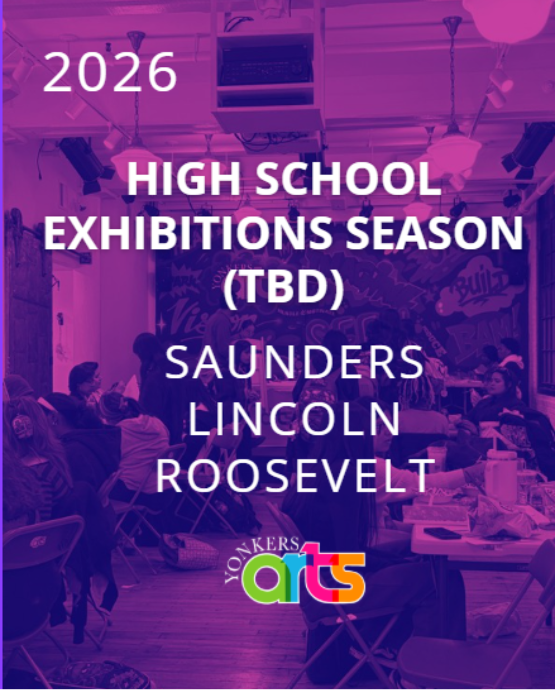 The Yonkers Arts High School Exhibition Season is a collaborative series of student art exhibitions showcasing the creativity and talent of young artists from Yonkers Public Schools, including Saunders Trades and Technical High School, Lincoln High School, and Roosevelt High School Early College Studies. Hosted at Yonkers Arts’ gallery and partner venues, the season highlights diverse media and themes while giving students professional-style exhibition experience and connecting them to the city’s broader arts community and events such as Yonkers Arts Weekend.