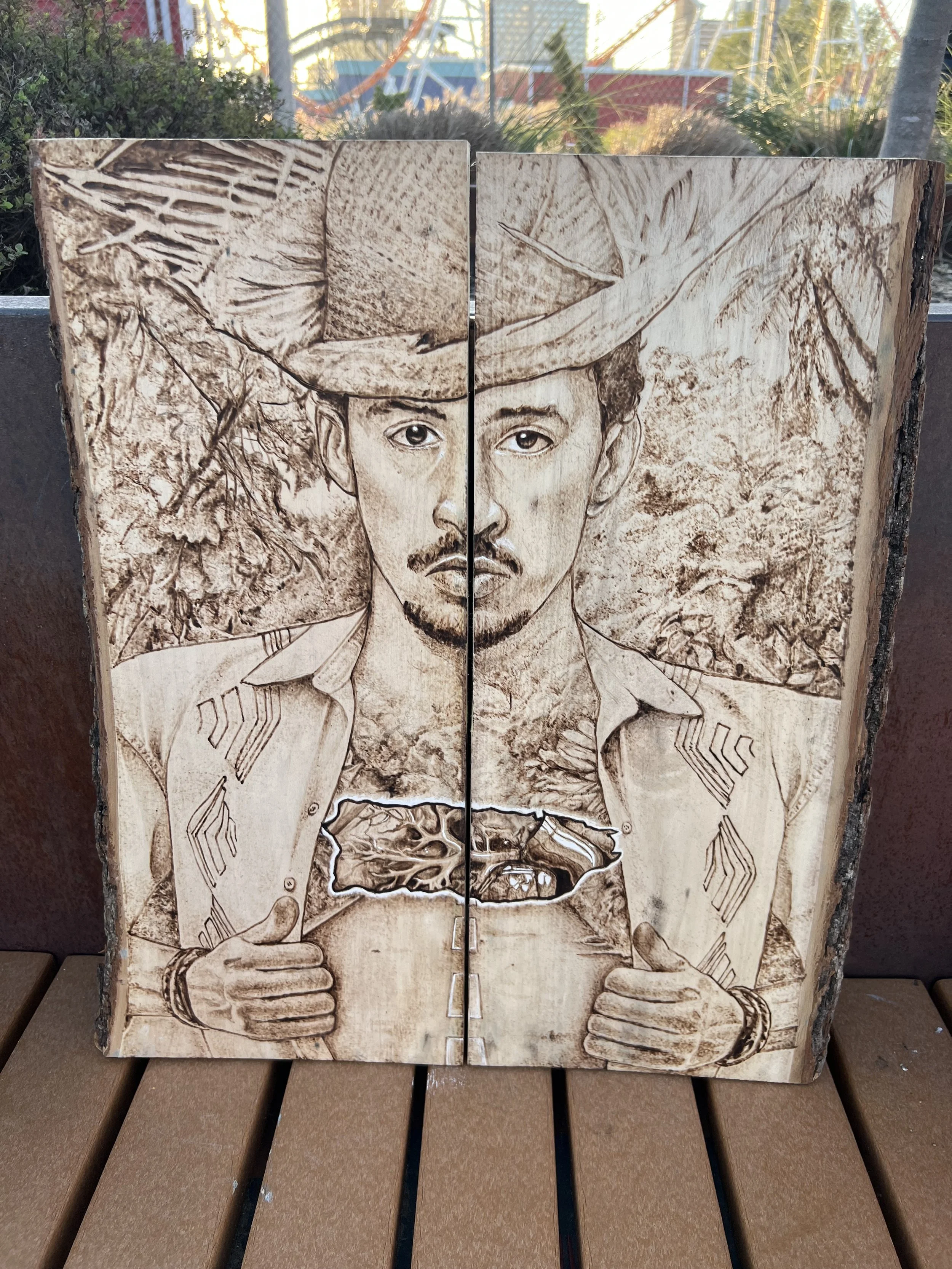 Born to Puerto Rican parents and raised in the Bronx. I've been creating art since I was in fourth grade. I was accepted to the High School of Art and Design. After graduation, I attended a summer art program at Cooper Union. That fall season, I started my journey at the University of the Arts. I studied many art forms and graduated with a BFA in Illustration. I now work for the Board of Education and teach art to older adults at Brooklyn Public Library branches. I work with watercolor, ballpoint, color pencil, acrylic, scratchboard, and pyrography. I started doing pyrography eight years ago, when I purchased a beginner's tool for wood burning. I began doing research on other pyrographers and realized that there were more professional wood burning tools. After working with my first professional wood burning kit, I fell in love with the process of making art. On top of enjoying the process I noticed that pyrography is not seen as much in an urban environment. I wanted to bring that rare, raw, rustic, art form to modern culture. I have been lucky to have my own solo show at Boricua College and to have some of my pieces show at few galleries, including Brooklyn Waterfront Artists Coalition {BWAC}, Greenpoint Gallery, the Islip Gallery and the D. Velez Gallery. I enjoy creating custom art for people. Knowing that they will forever have a piece of my art that I created with love, brings me a lot of pleasure. I also enjoy and love creating art that reminds me of my Hispanic Heritage. Wilfredo Santiago Brooklyn