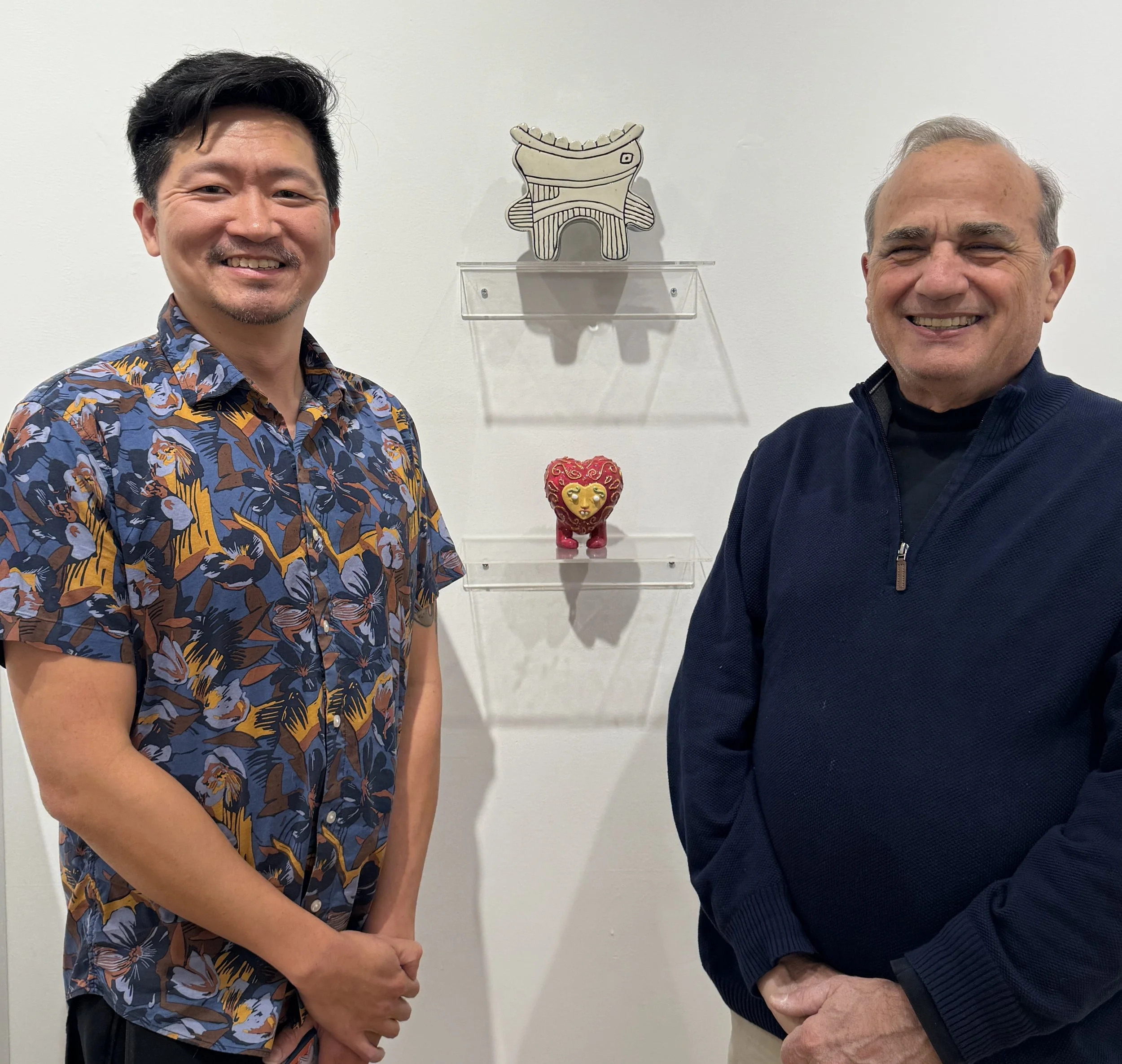 In the Spring 2024, Erwin, illustrator, surface design artist, and muralist, and David, ceramic artist, met at an art fair in Cold Spring, N.Y. Together, they are working to produce one-of-a-kind, fun and functional ceramic art. We hope you find a way to enjoy them everyday! About Erwin Ong Erwin Ong is a multidisciplinary artist based in White Plains, New York. He creates bright, joyful illustrations, murals, and mixed-media objects—from zines, to wood and cardboard sculptures, to ceramic figurines—shaped by memory and imagination. About David Rosen & Mad Dog Ceramics David is a ceramic artist working out of his studio in Yonkers, N.Y. He began working with clay as a boy growing up in Tucson. He continued his love for ceramics in the 1980s and helped create the Chelsea Ceramics Guild in Manhattan in 1987. Some of his influences are old Max Fleischer cartoons, balsa wood model plane building, and playing in the mud as a boy in Tucson after a rare rainstorm. Mad Dog Ceramics and the work David creates in his studio are dedicated to his favorite ceramics teacher, Joy Jonsann.