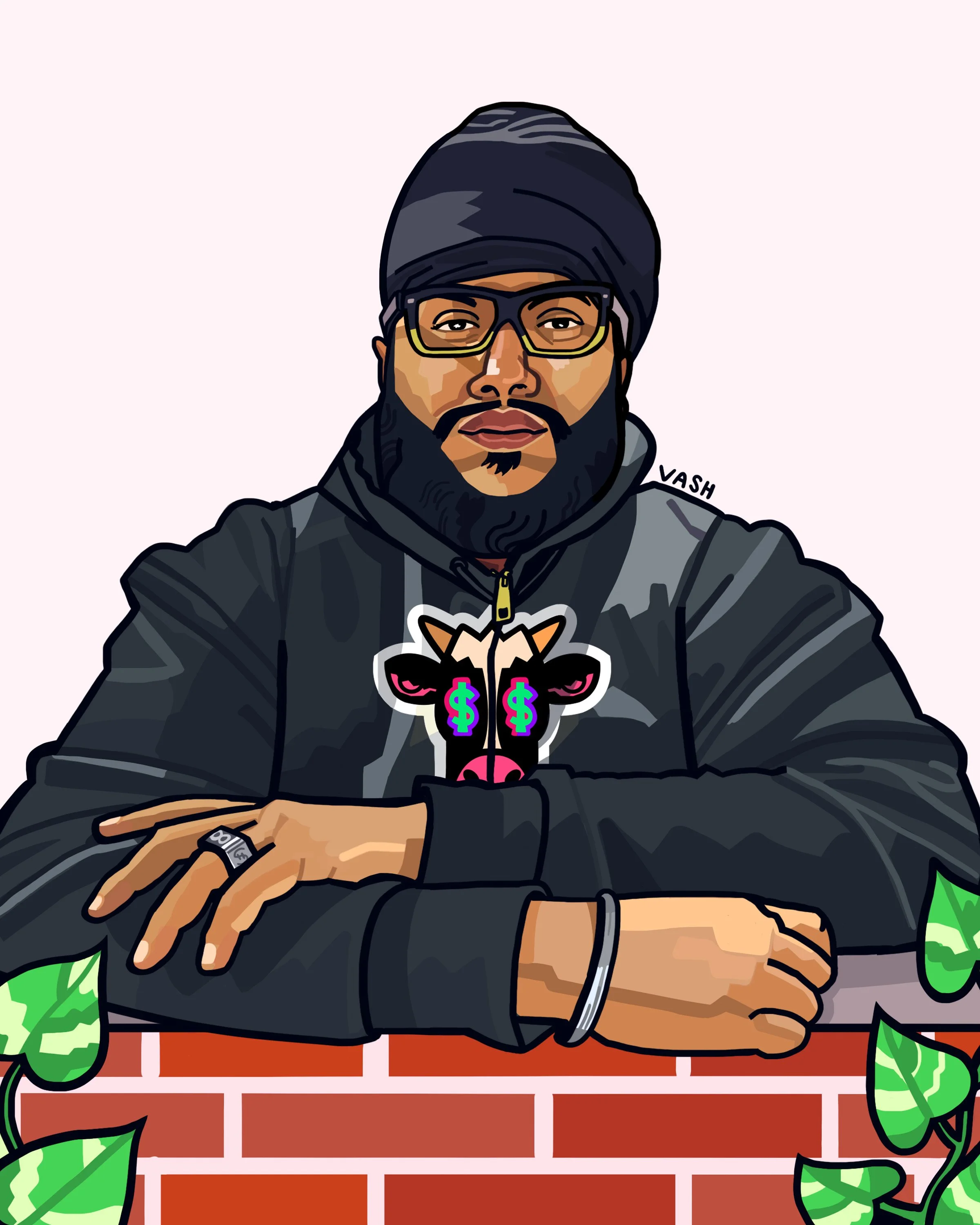 Haramritjot Singh is a New York–based artist and creative director whose work is shaped by his Punjabi and Sikh identity, as well as his upbringing in New York City. Working primarily in acrylic on canvas, his practice explores themes of identity, labor, and cultural memory through a bold and expressive visual language. Singh often positions New York as both subject and symbol within his work. In an ongoing series, he translates lyrics about New York City from popular music into visual form, transforming familiar words into imagined landscapes and moments. His piece But for Now Heaven’s in New York embodies this approach, reimagining the Empire State Building through a dreamlike and monumental lens as a personal love letter to the city he calls home. A recurring focus in Singh’s practice is the depiction of hands as both symbolic and literal tools for engaging with the world. This motif pays homage to blue-collar labor and generational work, drawing from his grandfathers’ lives as farmers in India and his father’s work in the construction industry in New York City. Beyond his studio practice, Singh is the founder of Cash Cow NYC, where he extends his artistic vision into community-centered projects across the city, using design and storytelling to build identity, celebrate youth, and bring art into everyday life.