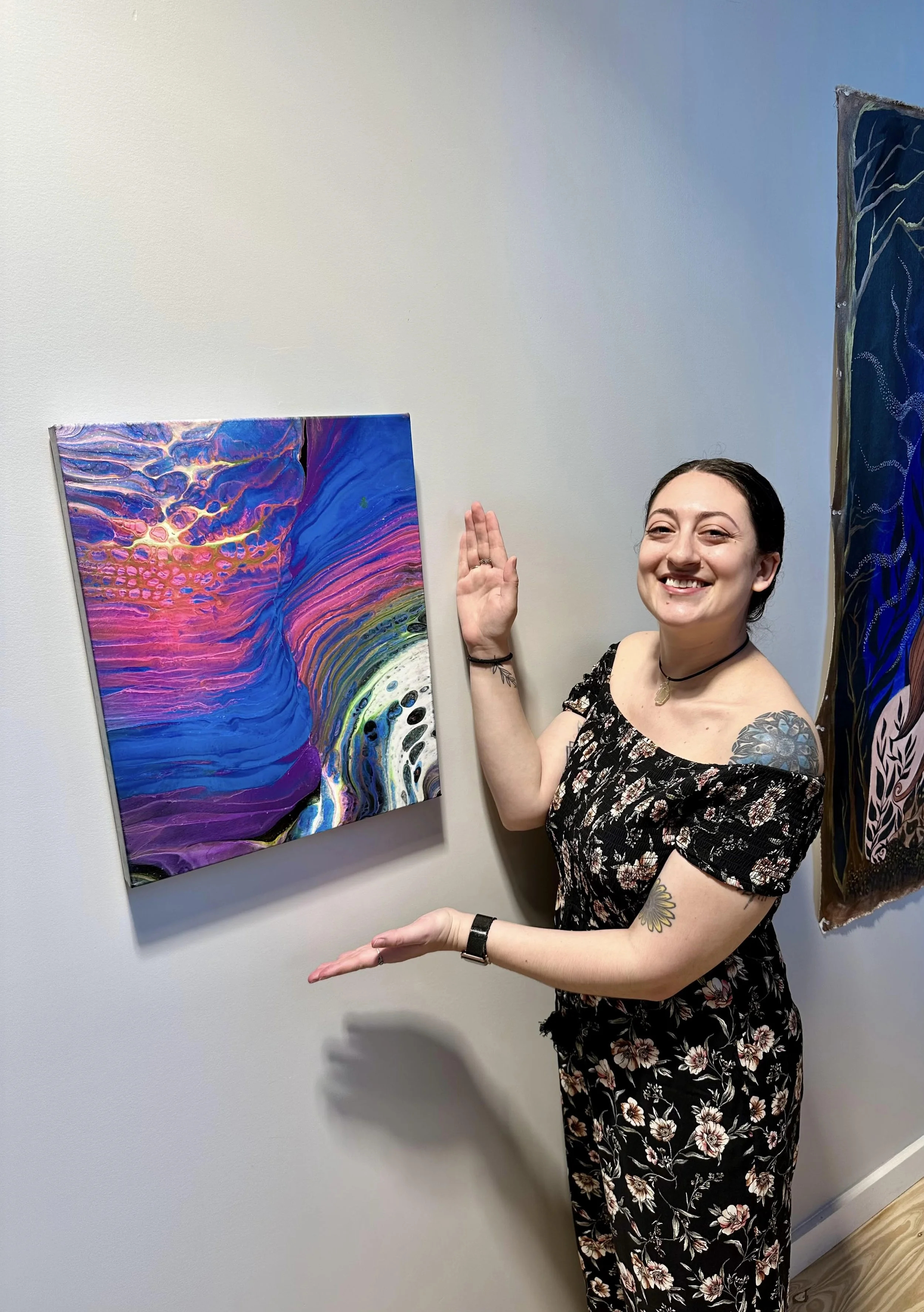 Ashley is a self-taught artist based in Carmel, NY, specializing in fluid art. She’s drawn to the natural movement and flow of paint, letting each piece develop in its own way. Her work is inspired by color, motion, liveliness, and a bit of unpredictability, leaning into the balance between intention and chaos.
