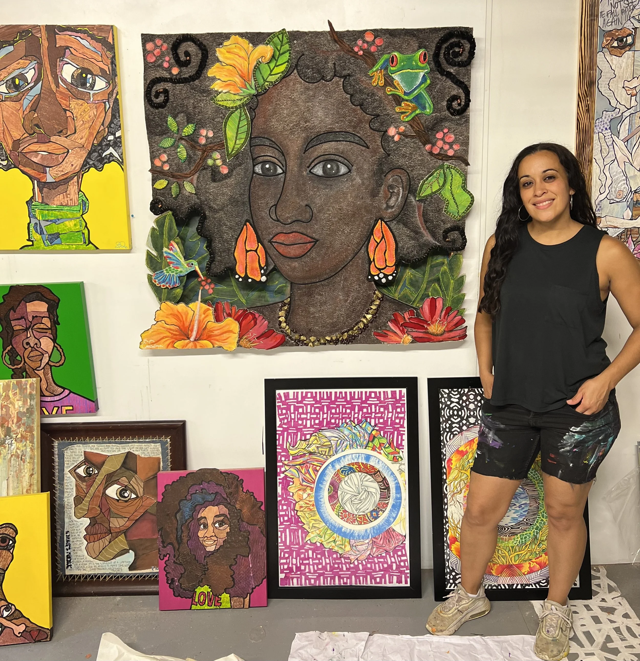 Beckie Anderson, (Becca_La_Art) who was born and raised in New York, is an emerging visual artist whose work explores black and brown identity focusing on primarily an Afrosentric/AfroPuerto Rican/ Puerto Rican vibes. Working primarily with colored pencils, acrylic markers, Pitt Pens, and mixed-media toned paper and, as well as Acrylic paint on canvas. Becca Anderson creates pieces that emphasize bold color, intricate detail, layered textures and shading trying to celebrate what she finds to be the beauty of her culture, ancestry, and lived experiences. Although at the beginning of her professional art career, Becca Anderson has dedicated significant time to developing a personal visual language that reflects her personal experiences, cultural influences, and a love of storytelling through imagery. Her recent body of work includes portrayals of the duality in being bi-racial, which highlights her love and pride of her heritage. Becca Anderson’s practice continues to evolve as she experiments with new techniques and mediums. With a growing presence on Social Media, she aims to share her work with a wide audience while building connections through exhibitions, collaborations, and commissions.