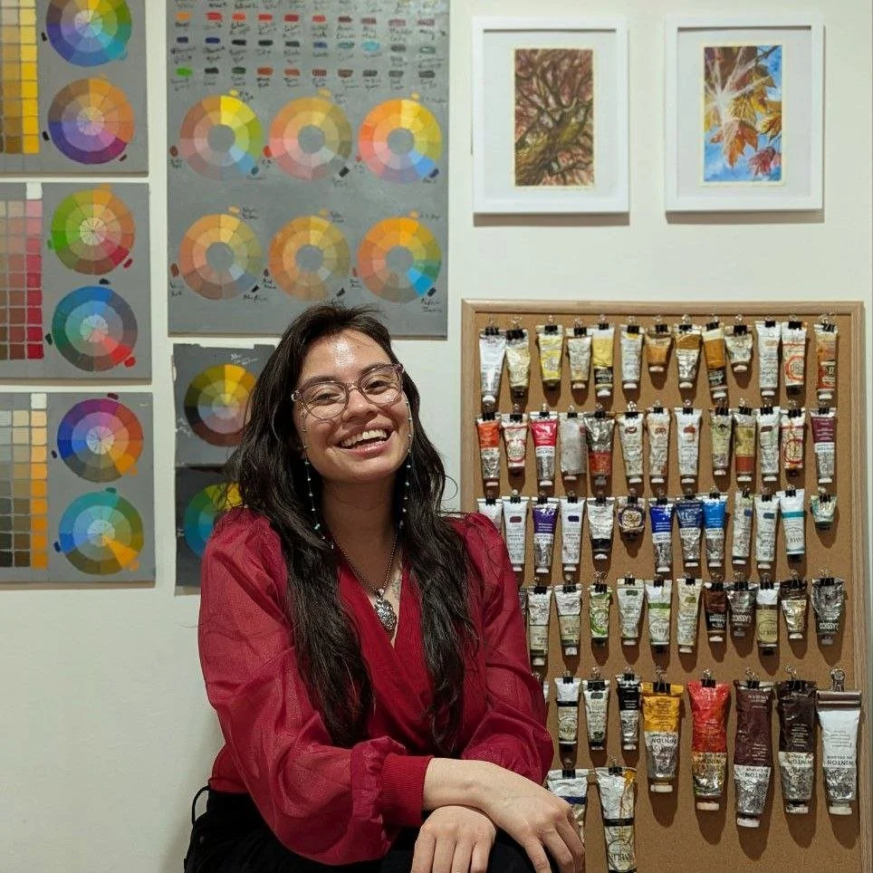 Lila Rose is a multidisciplinary artist influenced by my artistic inspirations, which include music, spirituality, travel, and nature. Much of my work uses acrylic, the first paint I ever used, and I love that I can use my hand when needed to really add myself to my work. It’s very versatile, from the different ways I can add texture to backgrounds to the realism of a person’s skin. My work's influences are my culture, dreams, spirituality, music, nature, travel, and, of course, food! I create fun subjects, like my art piece “Everyone Loves Donuts!”, a 10x10 mixed-media piece featuring my family as different-flavor donuts. I created this piece in January 2024 to challenge myself by trying food realism and creating something relaxing yet fun. In 2023, I started a concept journal to give myself a space to brainstorm the concepts for my artworks, due to my vivid dreams, during the day and night, basically all the time—to ensure the messages I want to convey come through to the viewer and that the emotions are felt through the canvas. My artistic goal is to define what being a successful artist means to me and to work toward the art career I want for myself.