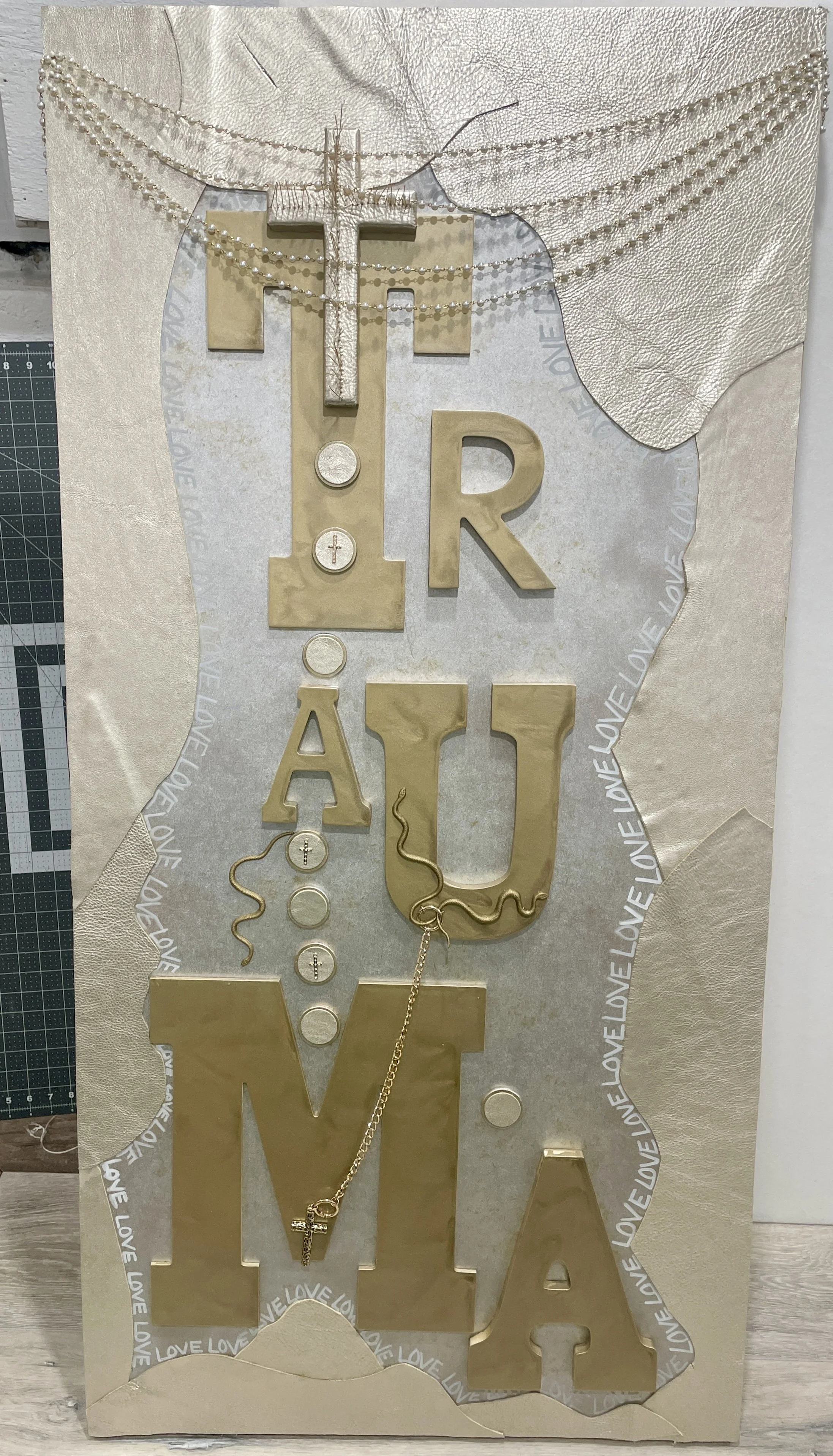 I'm Steph Dalencourt, and I use cheap stuff to talk about expensive problems. My work is Americana through the lens of a black eye. I classify myself as a “trash-core absurdist” who tends to use, well, trash, to create poignant stories. I explore almost any medium, but my niche lives in the realm of sculptural painting and installation. Layering with impasto, vintage artifacts, and unlearned techniques is how I bridge the gap from my mind to the viewer's eyes and press the question, "How 3D can I make 2D?"