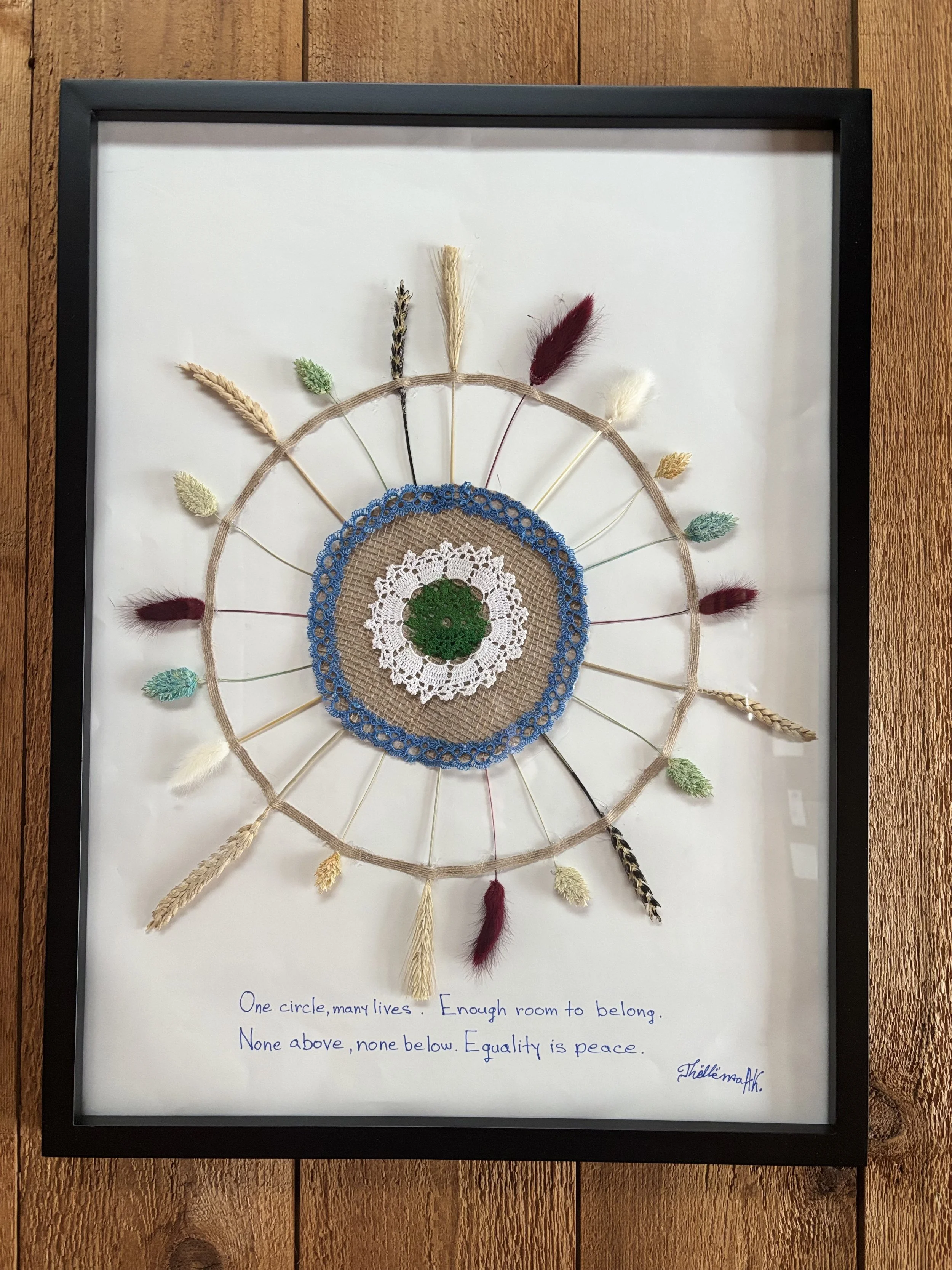 Through poetry and mixed-media art, her creative practice explores themes of human dignity, equality, belonging, and peace, reflecting her lifelong commitment to human rights.